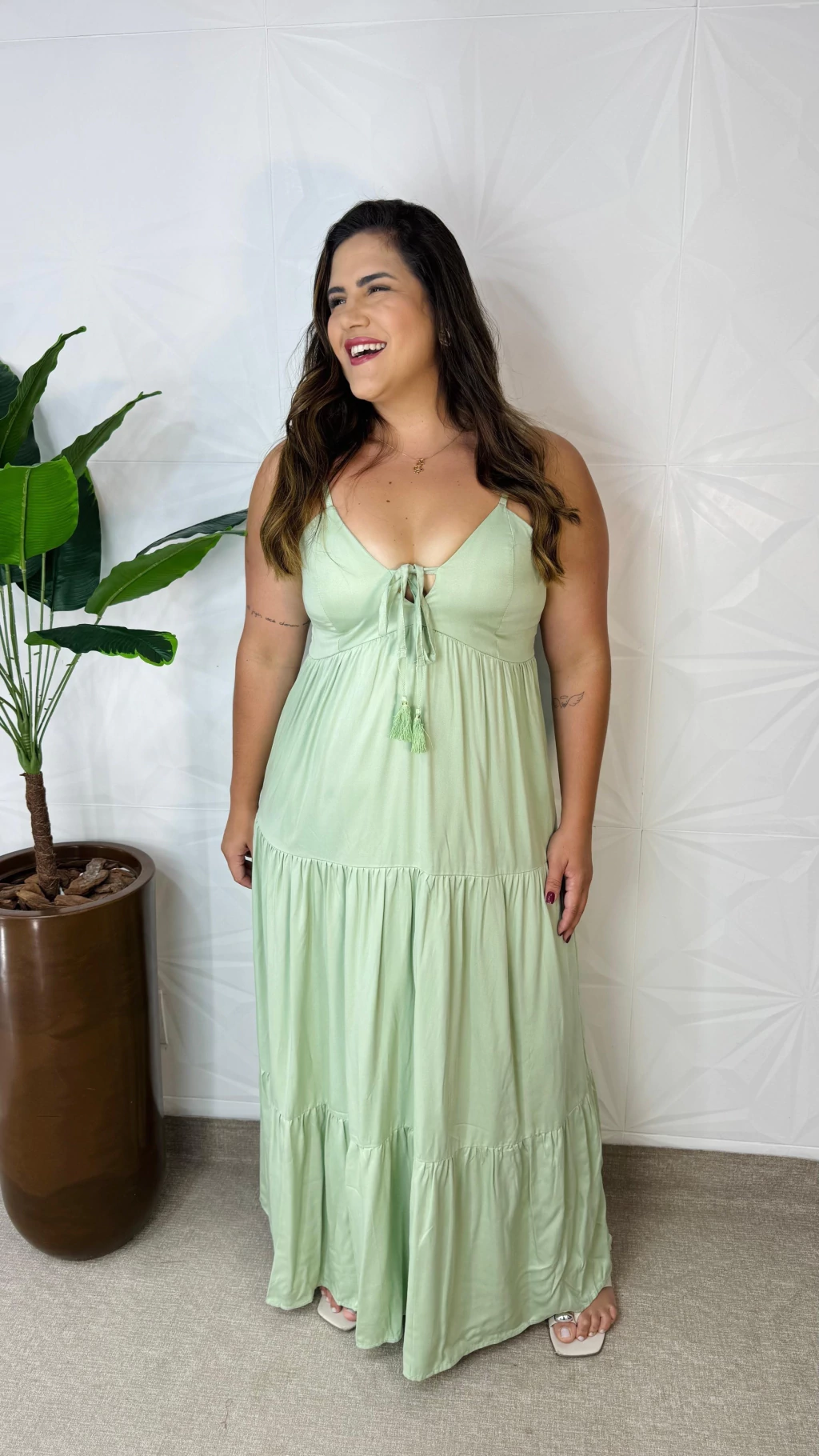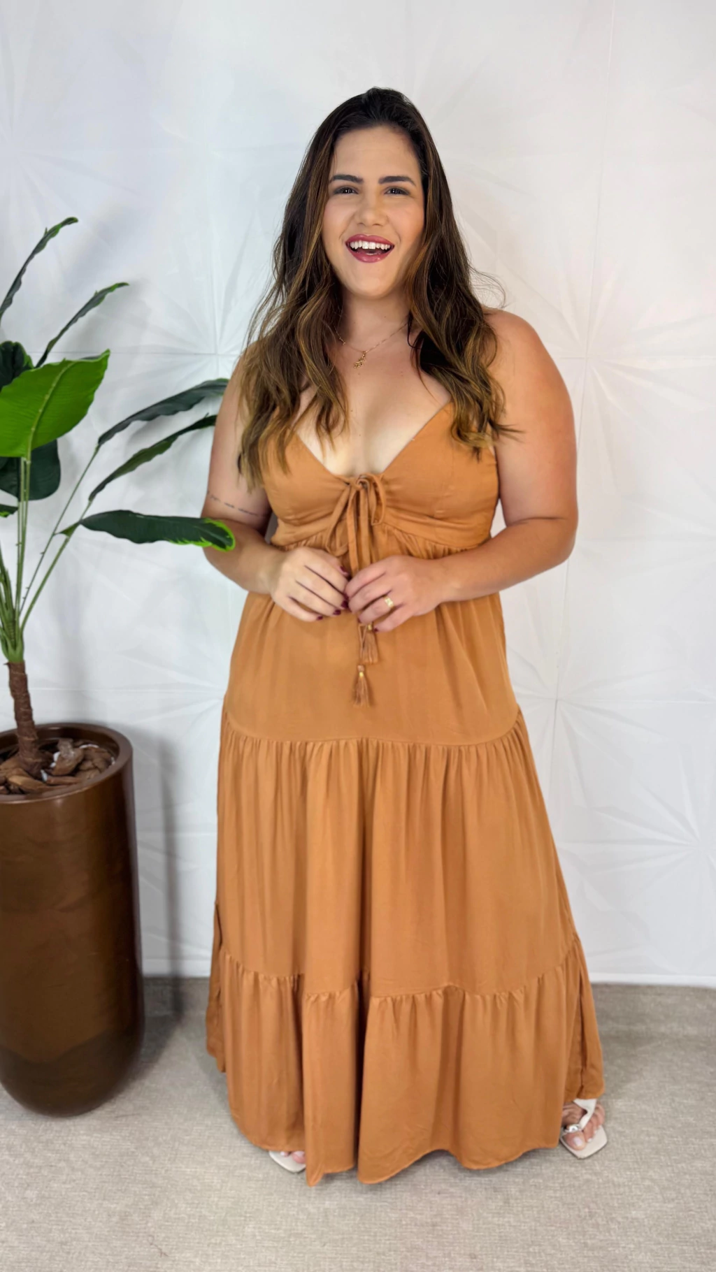 Vestido Longo com Amarração Frontal: a peça que une elegância e conforto para suas ocasiões especiais! 🌟 Confeccionado em tecido viscose sarjada, o vestido destaca a amarração frontal que valoriza a silhueta com charme e delicadeza.
